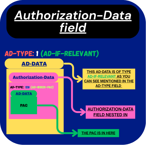 As shown in the image above, the nested authorization-data inside the outer ad-data carries an ad-type of AD-WIN2K-PAC. This value is specific to Windows and was not covered earlier. The ad-data for this type is what contains the actual PAC.