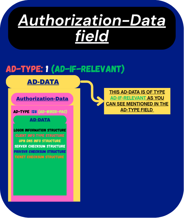 If the ad-type for this associated data is AD-IF-RELEVANT then the data will carry another authorization-data structure nested inside it. I know its getting a bit confusing look at the visual image below to understand it further.